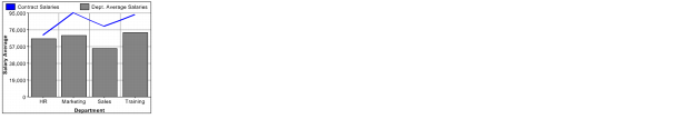 The example in the following procedure creates the chart in the previous figure, which shows a bar chart with a line chart added to it. In this example, you chart the salary of permanent employees (bar) against contract employees (line).
