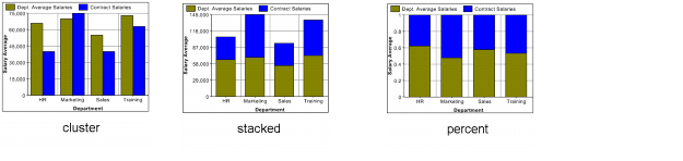 To combine multiple data series into a single chart, insert multiple cfchartseries tags within a single cfchart tag. You control how the multiple data collections are charted using the seriesPlacement attribute of the cfchart tag. Using this attribute, you can specify the following options: