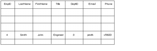 For example, a table might contain the ID, name, title, and other information for individuals employed by a company. Each row, called a data record, corresponds to one employee. The value of a column within a record is referred to as a record field.